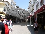 Bussimatkailusta innostuneena päätimme seuraavana päivänä suunnata pienet nenämme kohti Icmeleriä. Halvin vaihtoehto onkin kävellä rantatietä pitkin suoraan Marmariksesta Icmeleriin. Matka ei ole kovin pitkä ja lapsetkin pystyvät sen kyllä kävelemään. Vaihtoehtona Icmeler lienee hieman rauhallisempi ja idyllisempi kuin Marmaris. Kylän kaduilla ei ihmisiä missään vaiheessa tungokseksi asti riittänyt - rannalla ja luksushotellien läheisyydessä tilanne olikin toinen. Kauppakadun myyntikojujen ja maisemien katsastamisen jälkeen oli pakko saada Turkin parasta antia: KEBABIA! Kyllä maistui. Kävelymatka takaisinpäin kestikin täydellä vatsalla liki kaksi kertaa niin pitkään kuin aamuinen tulomatkamme.