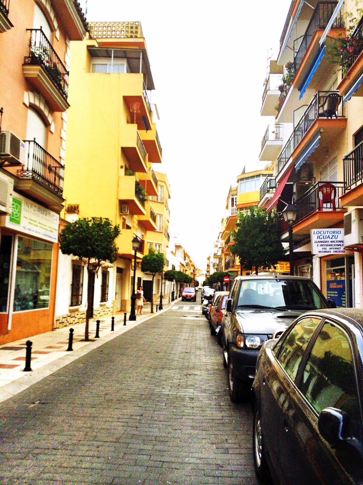Näin pitkällä matkalla huomasi, miten ihanaa on, kun ei tarvitse kiirehtiä mihinkään. Jos päiviä on rajallisesti, esimerkiksi vain viikko, voi paljon asioita jäädä huomaamatta. Nyt ei tarvinnut säntäillä mihinkään. Esimerkiksi kun tutustuin Fuengirolan keskustaan yhtenä ensimmäisen viikon päivänä, petyin hieman, koska minulle jäi sellainen käsitys, että Fuengirolan keskustassa ei ole oikein mitään eikä vaatekauppojenkaan valikoima ole kovin kummoinen. Sitten toisella kerralla, itse asiassa ilta aikaan, kun olimme menossa illalliselle, huomasinkin, että olin vahingossa jättänyt katsastamatta suuren osan alueesta. Lopulta löysinkin liudan toinen toistaan ihanampia pikkukatuja putiikkeineen ja kahviloineen.