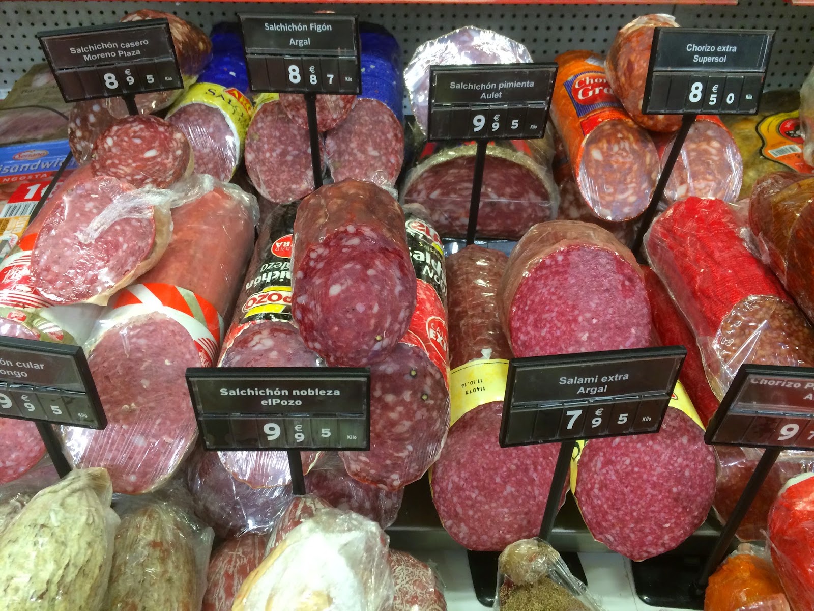 Meidän reissulla ruokakauppojen, supermercadojen, valikoimat tulivat erittäin tutuiksi. Hintataso oli suomalaiselle tietenkin alhainen, ja valikoimat hyvät etenkin tuoreen lihan ja kalan osalta. Kasvisten osalta olin hivenen yllättynyt valikoimien suppeudesta. Esimerkiksi yrttejä, kuten minttua, oli huonosti saatavilla, ja kun Suomessa on tottunut, että sipulilajikkeitakin on useita vaihtoehtoja esillä, ei Fuengirolan ja Benalmadenan kaupoissa ollut välttämättä kuin yksi lajike. Kävimme siis matkamme aikana useissa niin pienemmissä kuin suuremmissakin marketeissa Fuengirolan ja Benalmadenan alueella. Suomalaisten kauppojen ja raaka-aineiden puhtauteen tottuneena, ei ruokatuotteiden taso tässä suhteessa ollut ihan samalla tasolla kuin Suomessa. Ulkomailla ollessa tulee oltua kuitenkin hiukan varautuneempi hygieeniassa. Kaiken kaikkiaan Fuengirolassa on kuitenkin helppo lomailla, kaupoista löytyy kaikki tarvittava, ja niissä on helppo asioida. Siksi kaupunki varmaan onkin myös suomalais-turistien suosiossa.